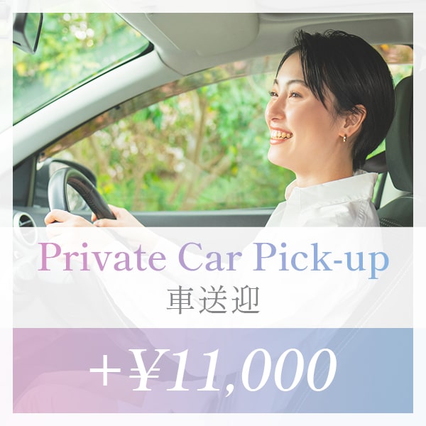 Our Car Transfer Service道に迷わず安心の車送迎Even if it is your first time in Osaka, you can be assured that our staff will provide car transportation to ensure a smooth experience.*Car pickup is an optional service.日本の大阪が初めてでも、スタッフがお客様を車で送迎させていただきますので、ご安心してご利用いただけます。*車送迎はオプションサービスです。