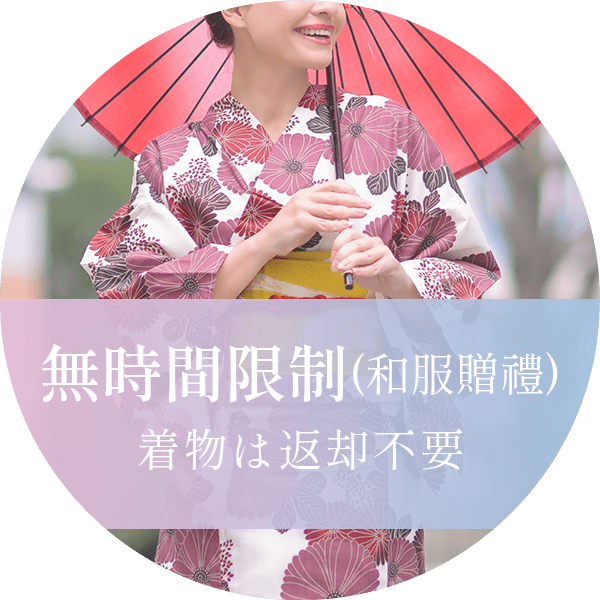 租借時間:請於當日 18:00 前歸還和服至本店。